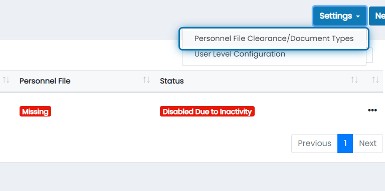 4. Click on Personnel File Clearance/Document Types