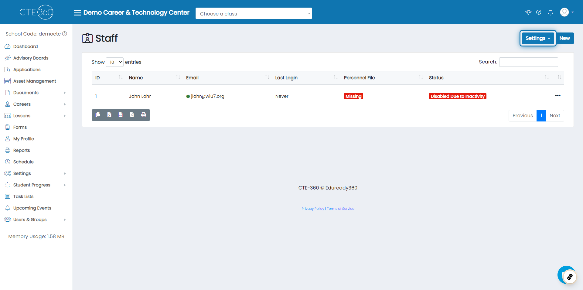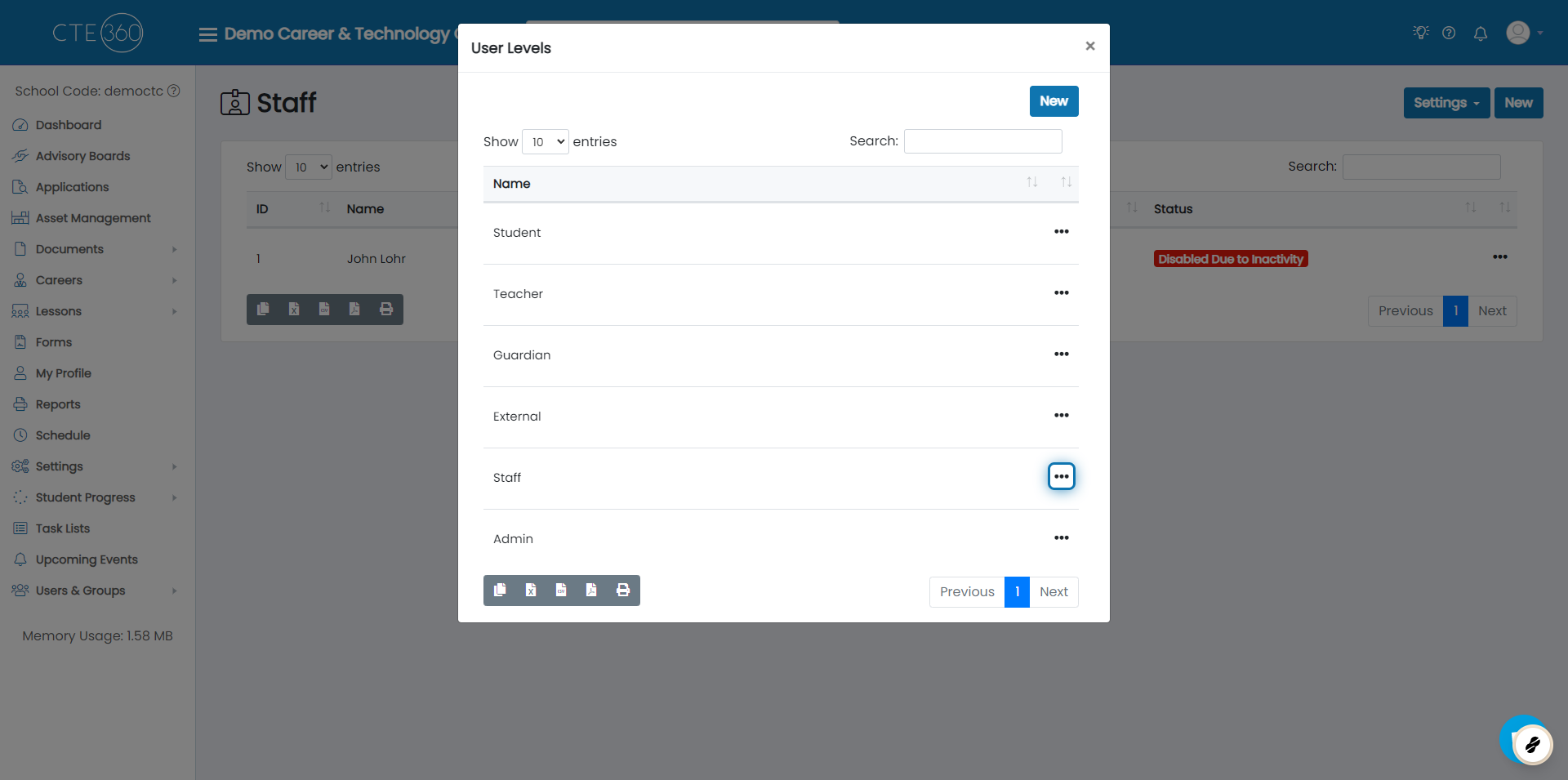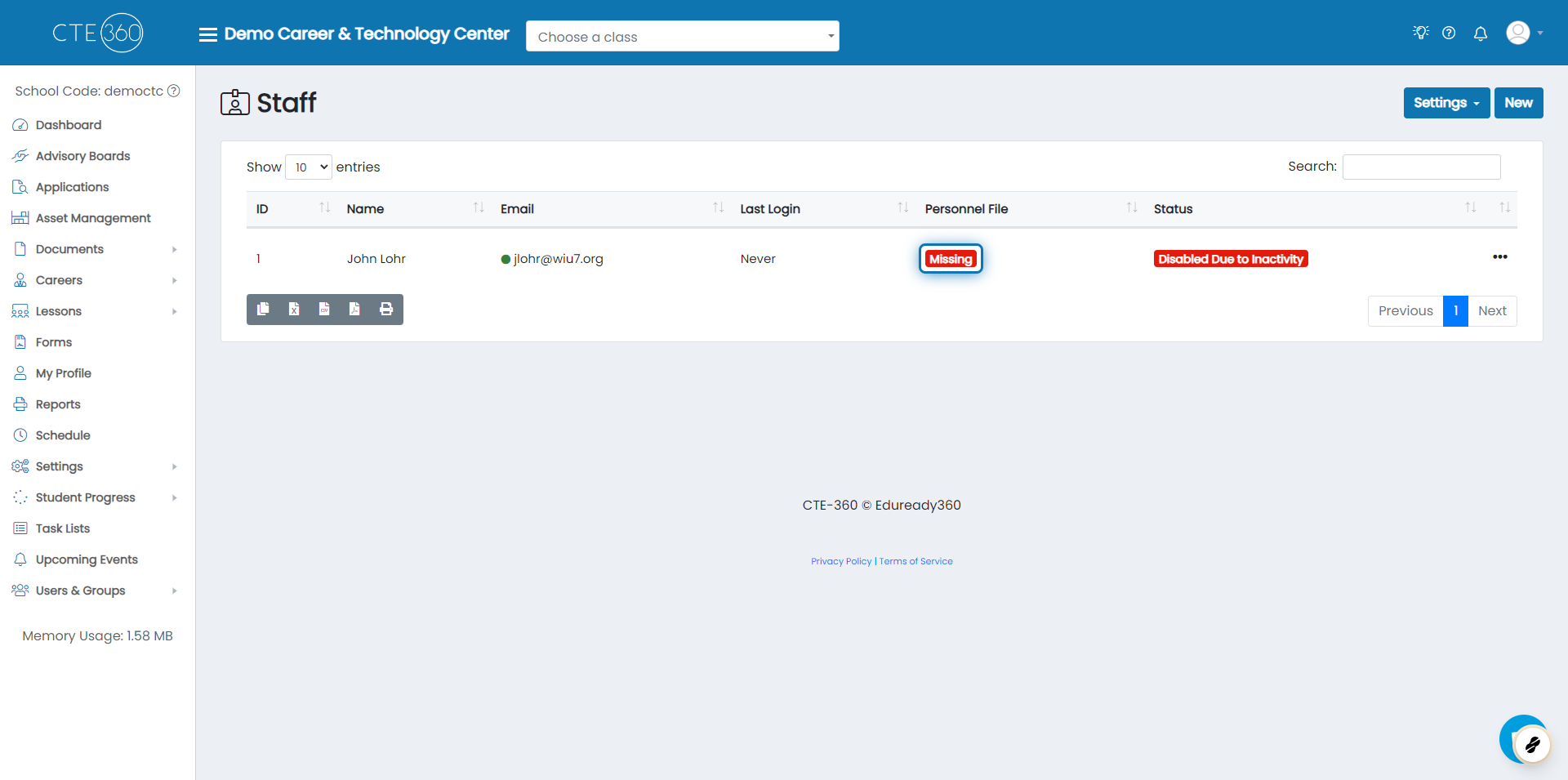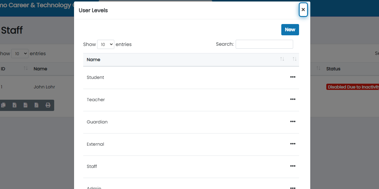 We're working with Staff in this example, but personnel files apply to Admin, Staff, and Teacher users.