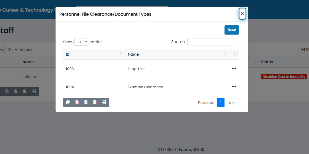 Personnel File Clearance Types can be managed from any of these user pages. In this example, we'll be looking at Staff.