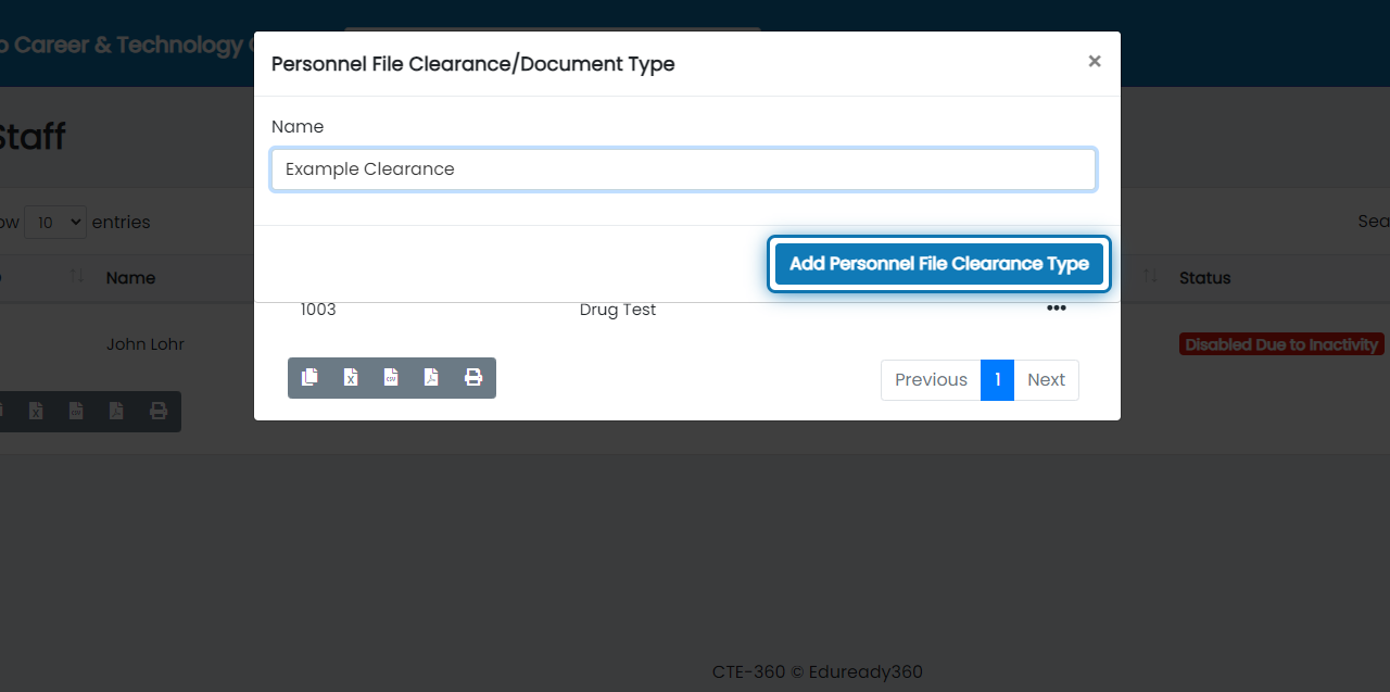 7. Click on Add Personnel File Clearance Type