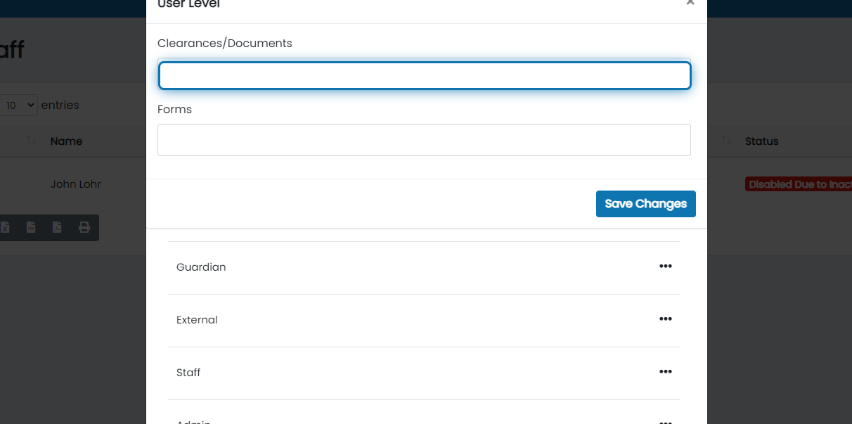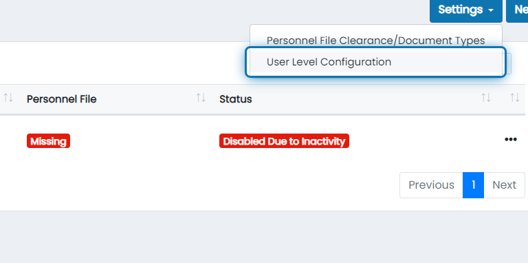 11. Click the action button for the user type you'd like a clearance to apply to