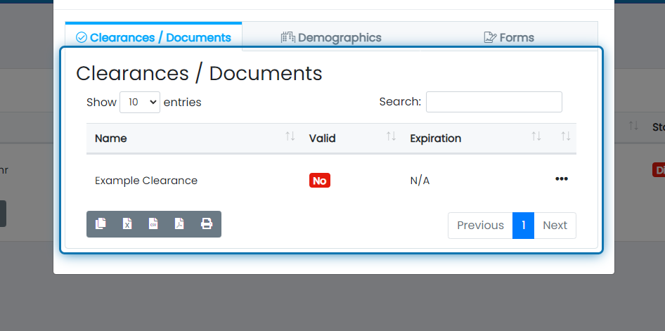 8. Once you're done adding Clearance/Document Types, click the X to close the modal