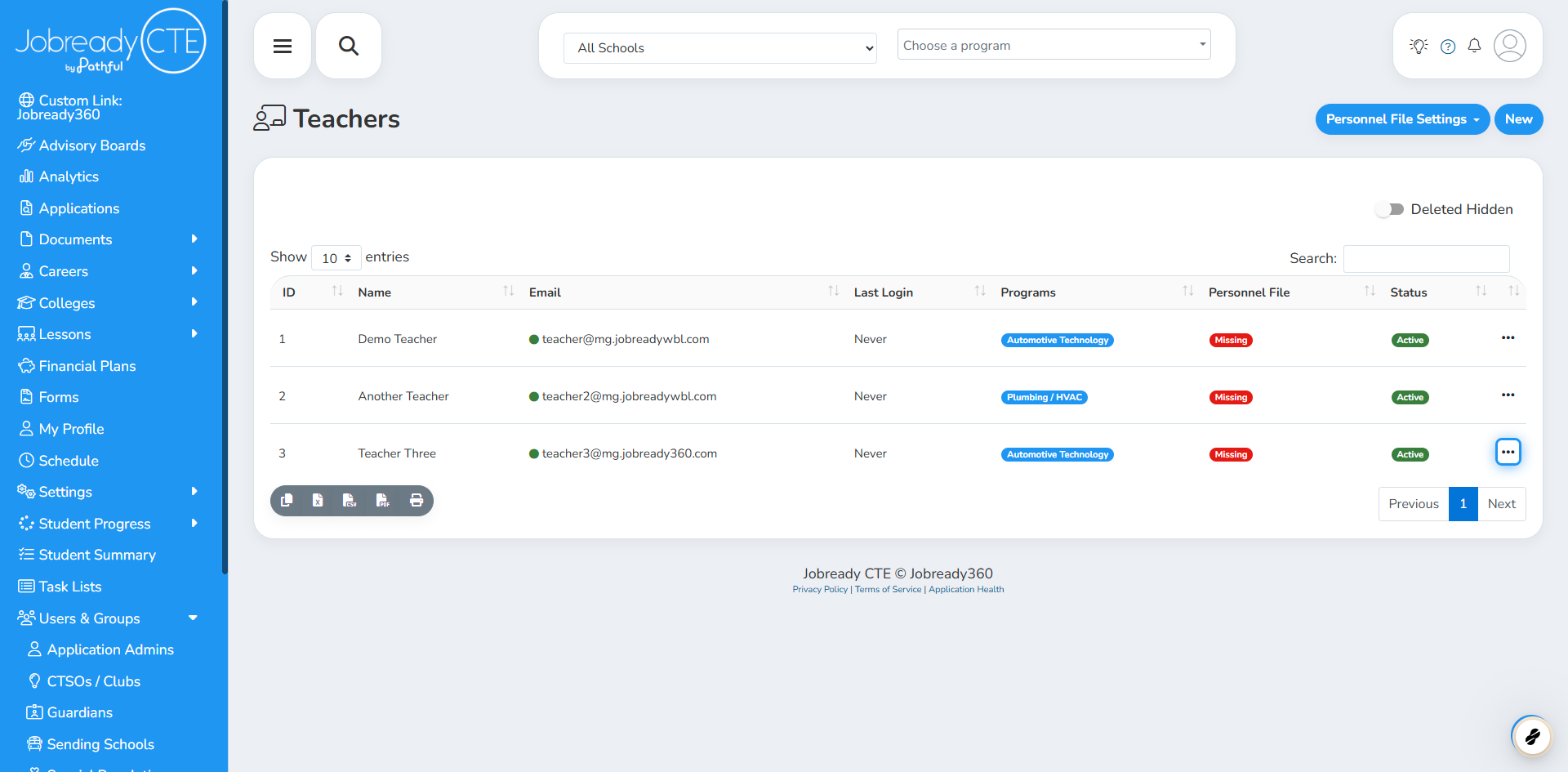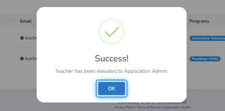 Application Admins can change a user's account level between Teacher, Staff, and Application Admin. This allows you to adjust a user's access without creating a new account.