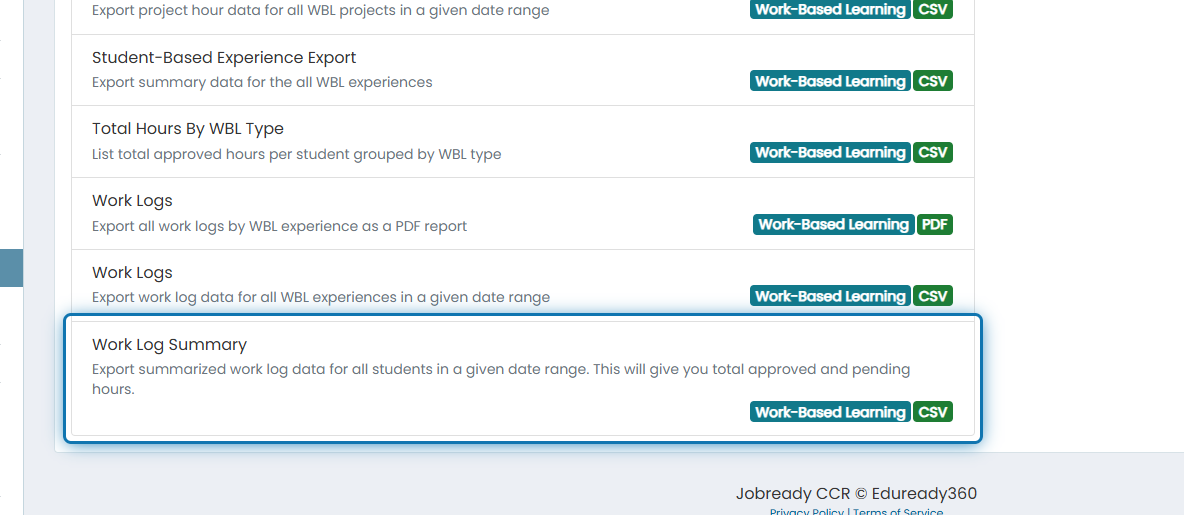3. Click on Work Log Summary