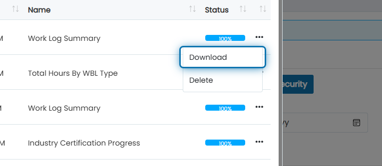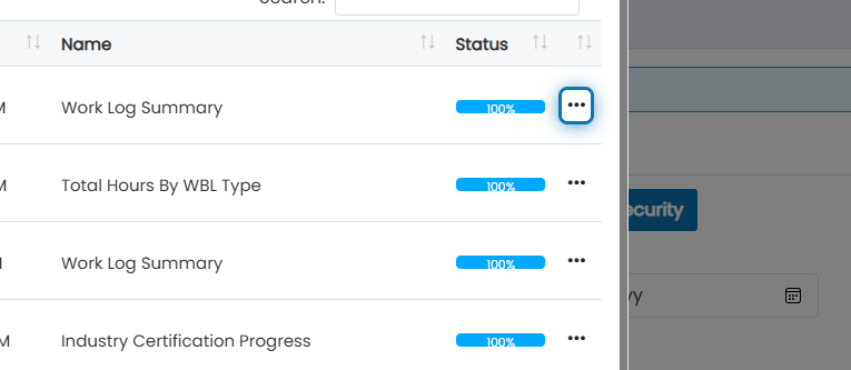 6. After status is 100%, click the action button next to the most recent report